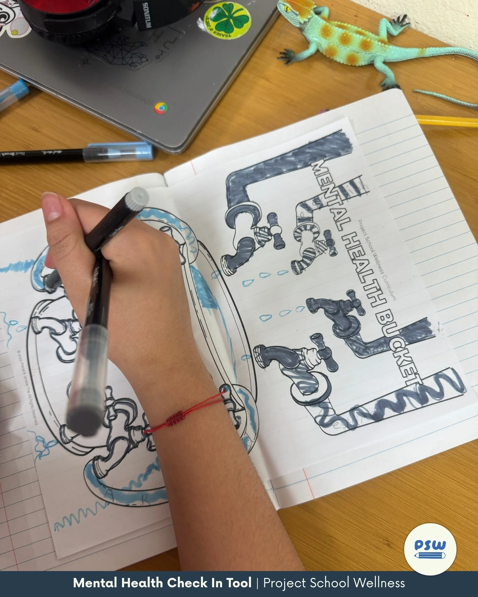 Not only do I love the Mental Health Bucket for so clearly breaking down the abstract idea of mental health into concrete pieces (the bucket, water lines, faucets, drains, hoses). But it is also because it gives students (and me) such a clear and concise way to check in with their mental health.